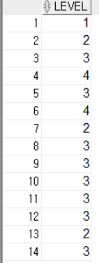 이런식으로 계층형으로 위에 몇번째(LEVEL)까지 거슬러 올라가는가를 구하는 것이다.