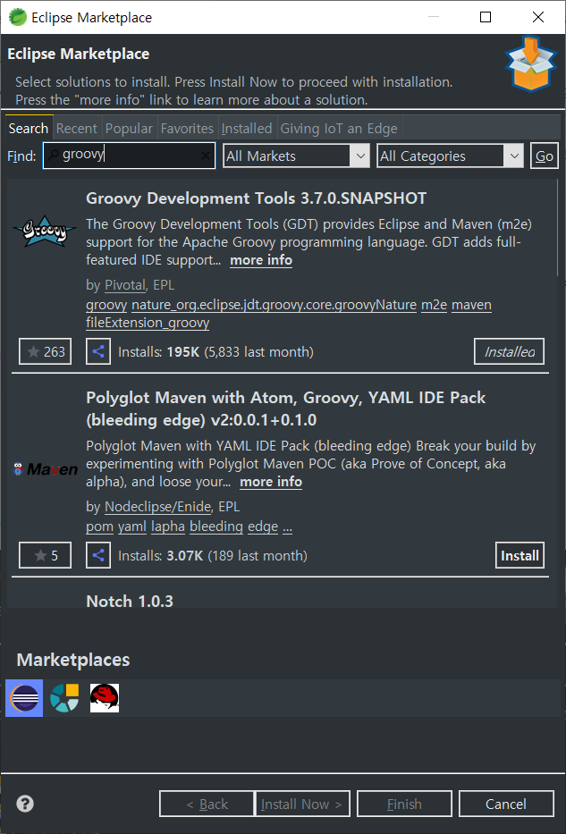 Help - Eclipse MarketPlace - groovy검색 후 설치