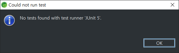 * Junit5를 선택 후 실행시 아래와 같은 에러가 나올 것이다. 이 에러를 보면 Junit4로 꼭 변경해주자.
